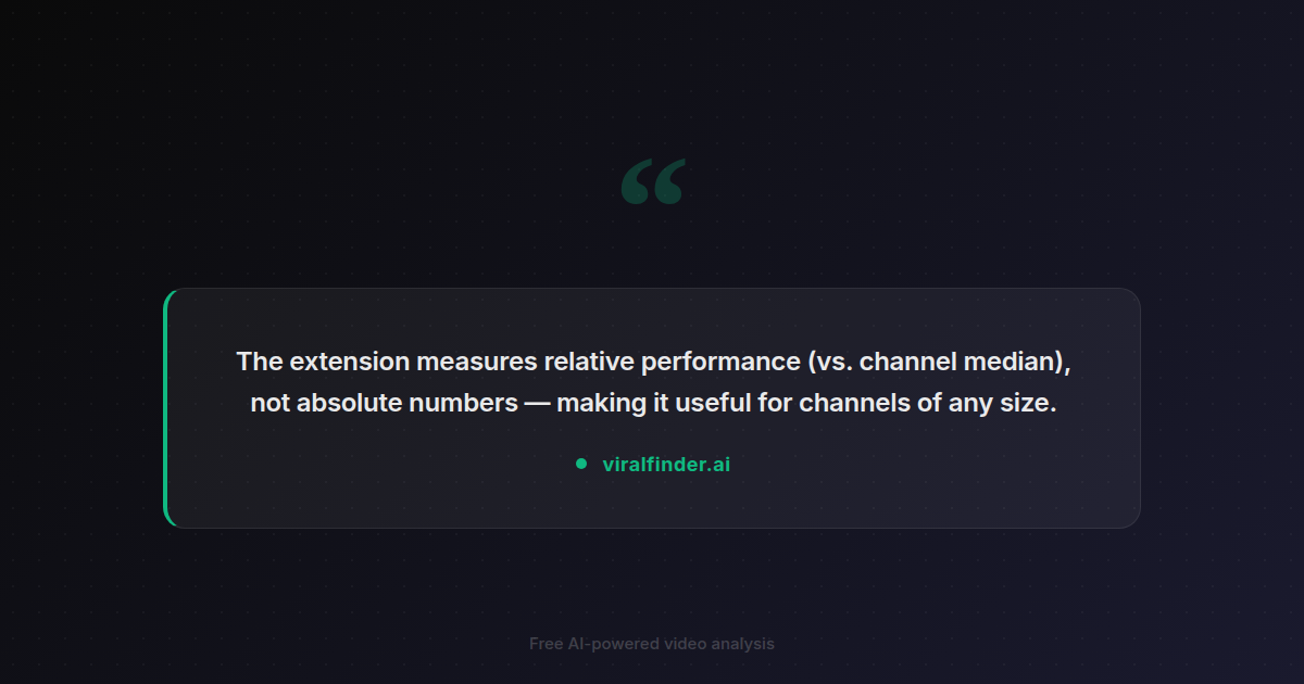 Takeaway: The extension measures relative performance (vs. channel median), not absolute numbers — making it useful for channels of any size.