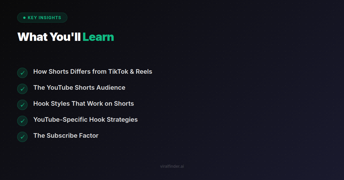 But YouTube's audience is different. They expect different things. And hooks that work on TikTok often underperform on Shorts.